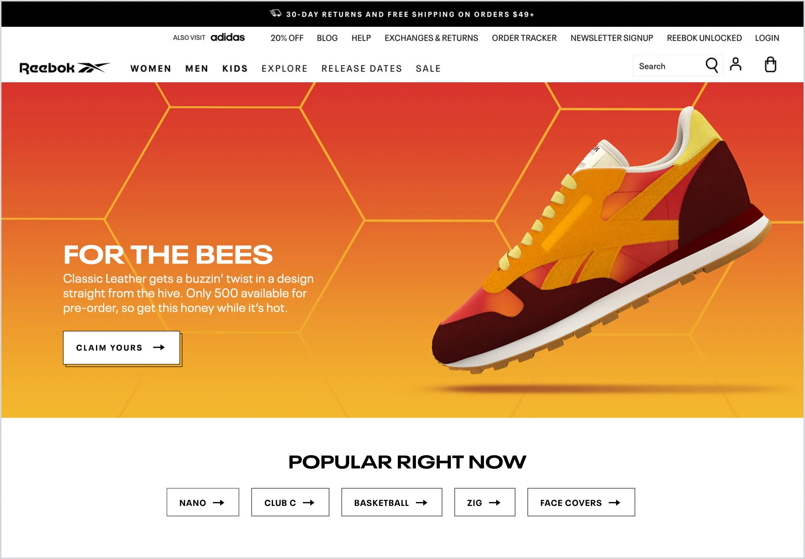 Landing Page on Reebok.com